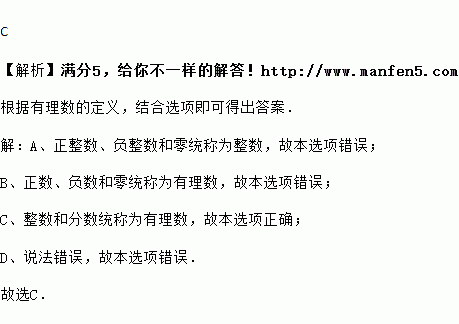C. 整数和分数统称为有理数 D. 自然数和负数统称为有理数
