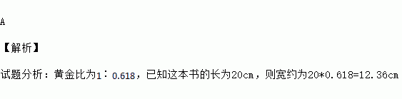 A 【解析】 试题分析:黄金比为1∶0.618,已知这本书的长为20cm,则宽约为20*0.618=12.36cm