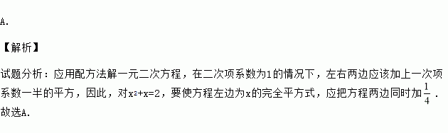 用配方法解方程x2+x=2,要使方程左边为x的完全平方式,应把方程两边同时( )