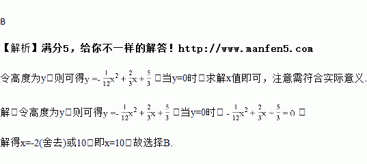 一男生推铅球,铅球在运动过程中,高度不断发生变化.已知当铅球飞出的水平距离为时,其高度为米,则这位同学推铅球的成绩为( )