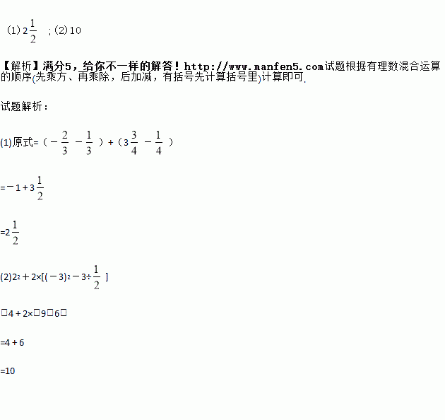 (2)22+2×[(-3)2-3÷]