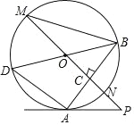 如图,已知⊙O中,AB为弦,直线PO交⊙O于点M、N,PO⊥AB于C,过点B作直径BD,连接AD、BM、AP.