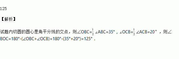 如图,⊙O是△ABC的内切圆,若∠ABC=70°,∠ACB=40°,则∠BOC=________°.