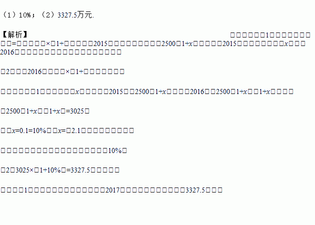 某地区2013年投入教育经费2500万元,2015年投入教育经费3025万元.