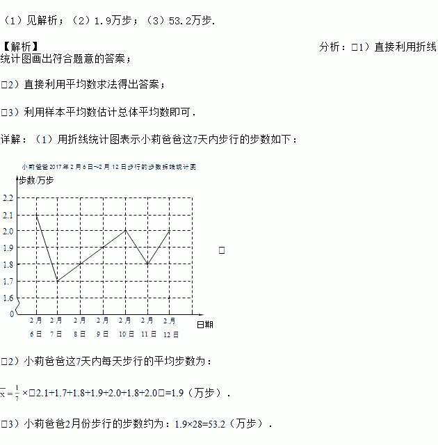 (1)制作适当的统计图表示小莉爸爸这7天步行的步数的变化趋势;