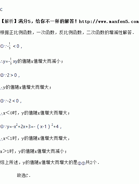 下列函数:①;②;③;④,其中的值随值增大而增大的函数有( )