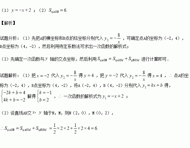 如图,已知一次函数的图象与反比例函数的图象交于A,B两点,