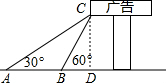15.分析 根据题意作出合适的辅助线,表示出30°角和60°角的正切值,根据它们的对边都是BD可以建立关系,得到AD和BD的长,从而可以得到CD的长,本题得以解决.