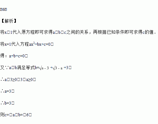 若关于x的一元二次方程ax2+bx+c=0的一个根是1,且a,b满足b=++3,求c.