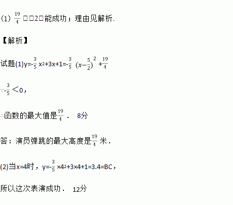 米,在一次表演中,人梯到起跳点A的水平距离是4米,问这次表演是否成功?请说明理由.![]()