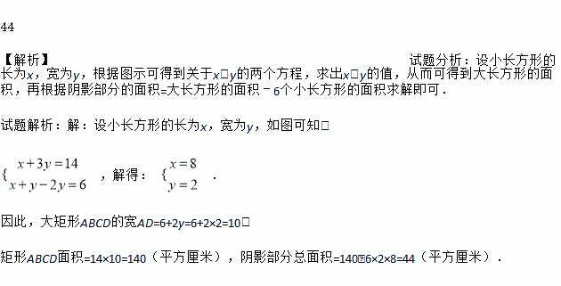 在矩形ABCD中,放入六个形状、大小相同的长方形,所标尺寸如图所示.试求图中阴影部分的总面积(写出分步求解的简明过程)