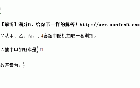 若需从甲、乙、丙、丁4套题中随机抽取一套训练,抽中甲的概率是 。