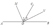 如图,A、O、B 三点在一条直线上,OM 是∠AOC 的平分线,ON 是∠BOC 的平分线.若∠1:∠2=1:2,则∠1=______°.