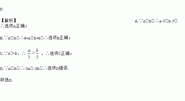 已知实数a,b,若a>b,则下列结论错误的是( )