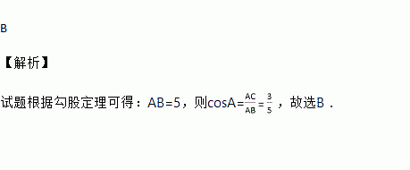 在Rt△ABC中,∠C=90°,BC=4,AC=3,则cosA的值是( )
