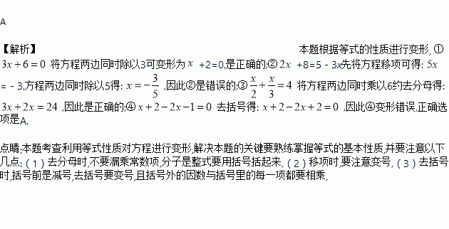 ④(x+2)-2(x-1)=0去括号,得x+2-2x-2=0.