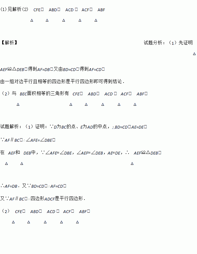 已知:如图,AD是△ABC的中线,E为AD的中点,过点A作AF∥BC交BE延长线于点F,连接CF.