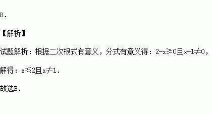A.x≤2 B.x≤2且x≠1 C.x<2且x≠1 D.x≠1