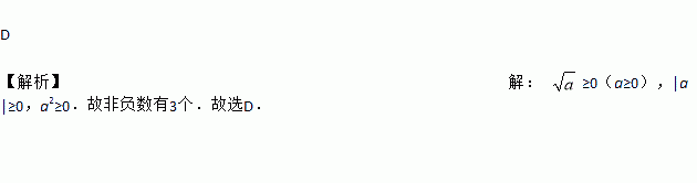 D 【解析】【解析】 ≥0(a≥0),|a|≥0,a2≥0.故非负数有3个.故选D.