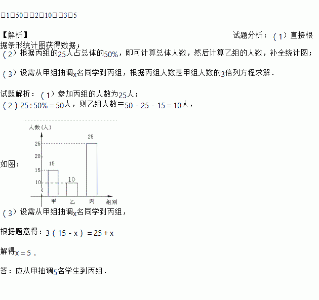 (3)根据实际情况,需从甲组抽调部分同学到丙组,使丙组人数是甲组人数的3倍,那么,应从甲组抽调多少名学生到丙组?