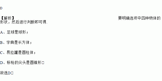 A. 足球 B. 字典 C. 易拉罐 D. 标枪的尖头