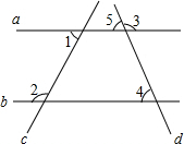 如图,直线a、b被直线c、d所截,∠1与∠2互为补角,∠3=117°,求∠4的度数.