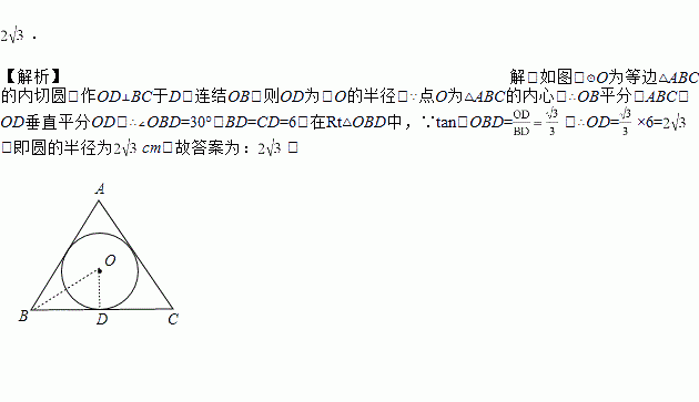 小颖同学在手工制作中,把一个圆形的纸片贴到边长为的等边三角形纸片上,若三角形的三条边恰好都与圆相切,则圆的半径为__________.