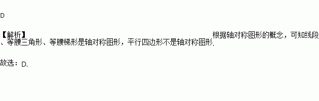 A. 线段 B. 等腰三角形 C. 等腰梯形 D. 平行四边形