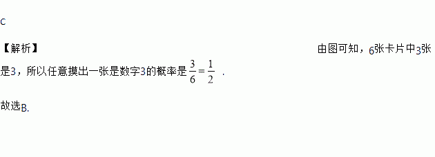有6张写有数字的卡片,它们的背面都相同,现将它们背面朝上(如图),从中任意摸出一张是数字3的概率是( )