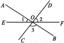 C、∠1-∠2+∠3=180° D、∠1+∠2+∠3=180°