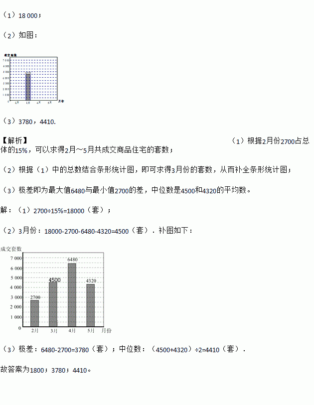 (3)该市这4个月商品住宅的月成交量的极差是____套,中位数是_______套.![]()