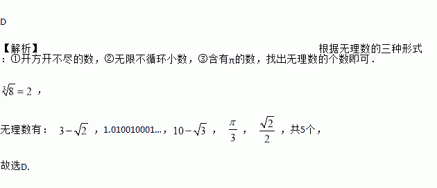 在以下实数, ,1.414,1.010010001…,42, , , 中,无理数有( )
