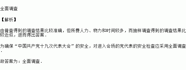 为确保“中国共产党十九次代表大会”的安全,对进入会场的党代表的安全检查应采用______填“全面调查”或“抽样调查”