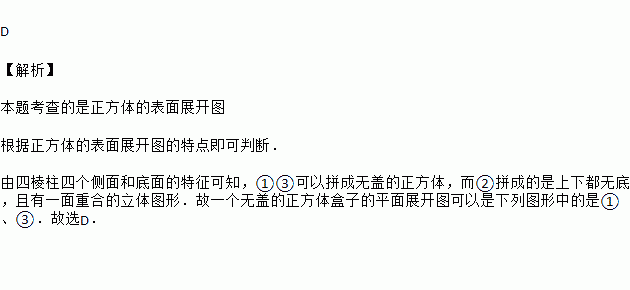 一个无盖的正方体盒子的平面展开图可以是下列图形中的