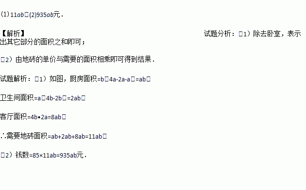 李叔叔刚买到一套新房,其局部结构如图,他打算除卧室外,其余部分铺地砖,则用a、b表示