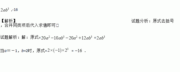(6分)先化简,再求值: ,其中a=-1,b=2 .