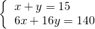 某蔬菜公司收购到某种蔬菜140吨,准备加工上市销售.该公司的加工能力是:每天可以精加工6吨或粗加工16吨.现计划用15天完成加工任务,该公司应按排几天精加工,几天粗加工?设安排x天精加工,y天粗加工.则所列方程组是________.