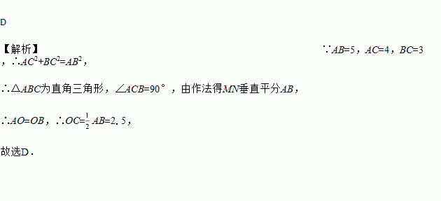 AB的长为半径画弧,两弧相交于点M,N,作直线MN交AB于点O,连接CO,则CO的长是( )