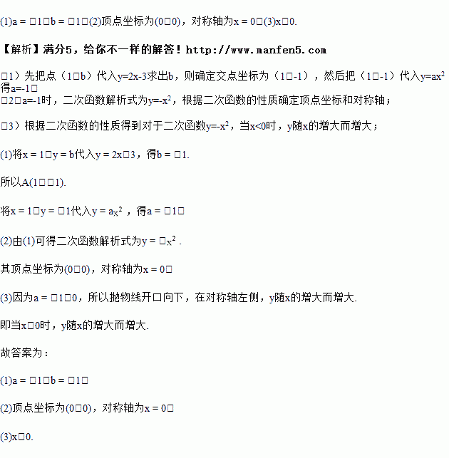 函数y=ax2(a≠0)与直线y=2x-3交于点A(1,b),求: