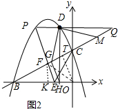 (3)如图3中,作FK⊥OB于K,OT⊥BC于T,连接OF,先证明OT平分∠COF,利用△OTC∽△BOC得$\frac{CT}{CO}$=$\frac{CO}{BC}$,求出CT,CF,由FK∥CO得$\frac{FK}{CO}$=$\frac{BF}{BC}$=$\frac{BK}{BO}$,由此求出点F坐标,再求出直线PE,列方程组求出点P坐标,发现PQ∥x轴,求出点Q坐标,再说明△DMQ绕点D顺时针旋转90°后得到△DGH,点G在线段BC上,点H在x轴上,DH⊥OB,最后求出BG,GH的长即可解决问题.