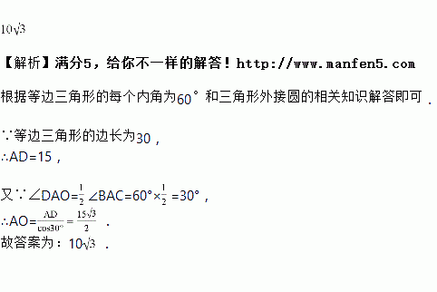 边长为的等边三角形的外接圆的半径等于________.