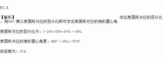 视觉控制、焊缝跟踪、涂装轨迹规划等,其中涂装轨迹规划的来源国结构(仅计算了中、日、德、美)如图所示,在该扇形统计图中,美国所对应的扇形圆心角是__________度.![]()