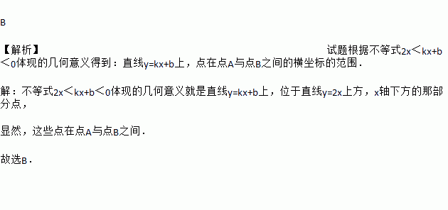 如图,直线y=kx+b经过点A(-1,-2)和点B(-2,0),直线y=2x过点A,则不等式2x<kx+b<0的解集为( )