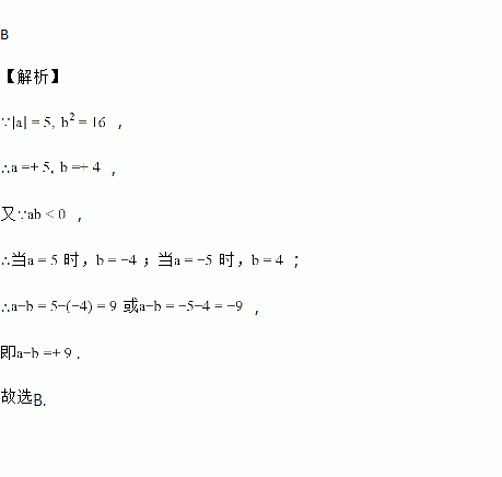 已知|a|=5,b2=16,且ab<0,那么a-b的值为( )
