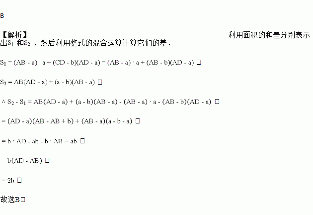 在矩形ABCD内,将两张边长分别为a和的正方形纸片按图1,图2两种方式放置![]()