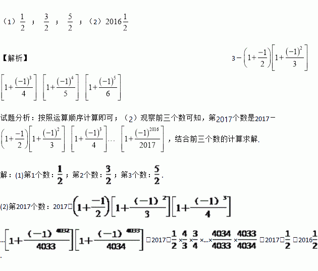 (1) ; ; ;(2) 【解析】3- 试题分析:按照运算顺序计算即可;(2)观察前三个数可知,第2017个数是2017- ,结合前三个数的计算求解. 【解析】 (1)第1个数:;第2个数:;第3个数:. (2)第2017个数:2017- …=2017-×××…××=2017-=2016.