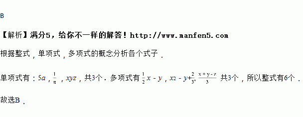 A. 个整式 B. 个整式,单项式与多项式个数相同