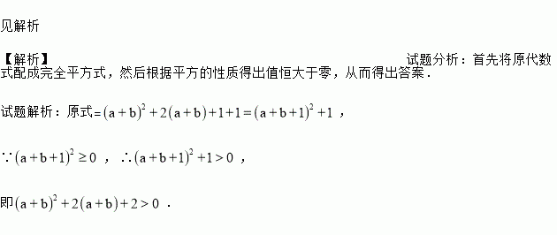证明:无论a、b为何值时,代数式(a+b)2+2(a+b)+2的值均为正值.