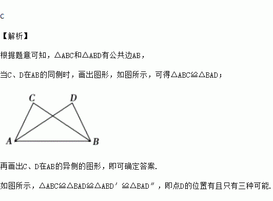 △ABC和△ABD是有公共边的三角形,如果可以判定两个三角形全等,那么点D的位置是( )