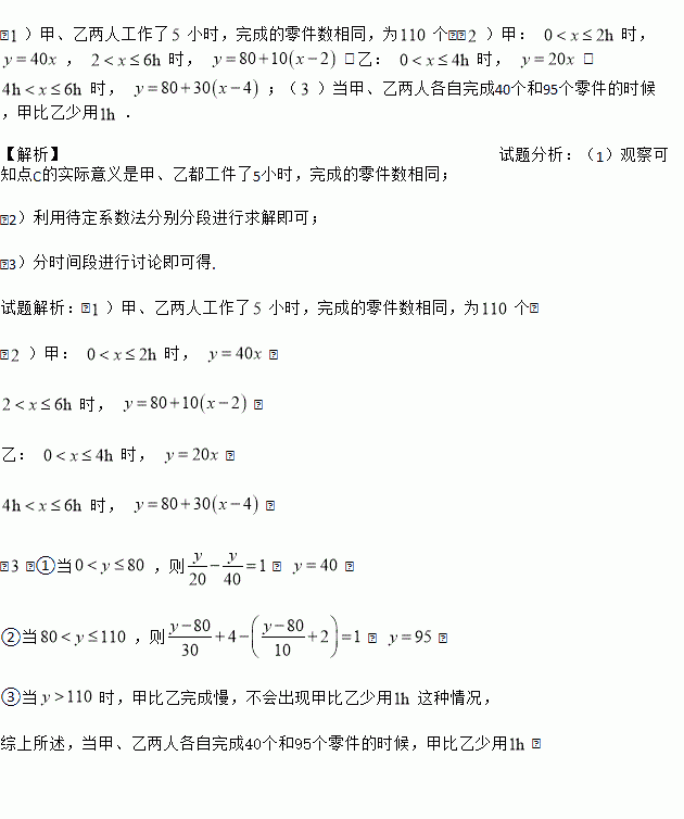 )如果甲、乙两人完成同样数量的零件时,甲比乙少用1小时,那么此时甲、乙两人各自完成多少个零件?